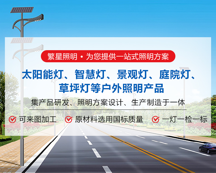 太阳能路灯采用全新锂电池及单晶硅光伏板,使整个太阳能路灯的平均寿命延长35%左右