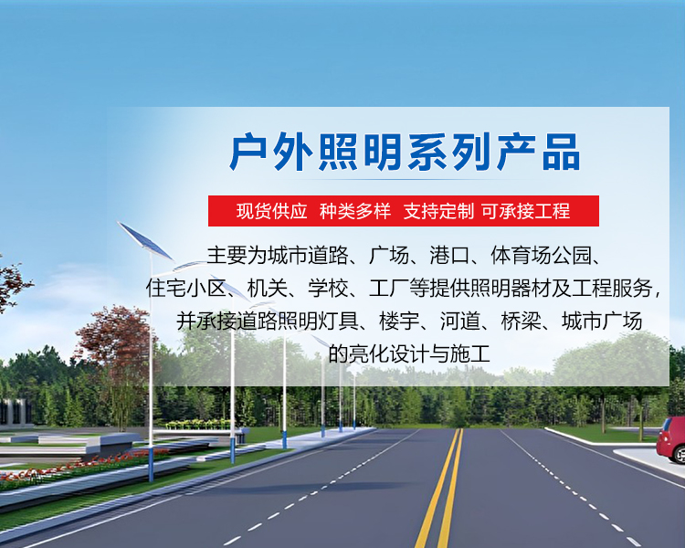 种类多样,各类产品都可来图加工,可以做到根据当地人文特色设计特色路灯照明